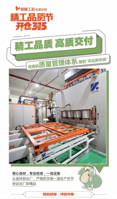 为了让更多的客户享受到优质的服务,爱阁工房在315这样一个特殊节点上开展了“315精工品质节”。 爱阁工房在315精工品质节活动中推出了多项优惠项目,并且承诺:工厂直供求份额,精工品质高质交付,保价2年。