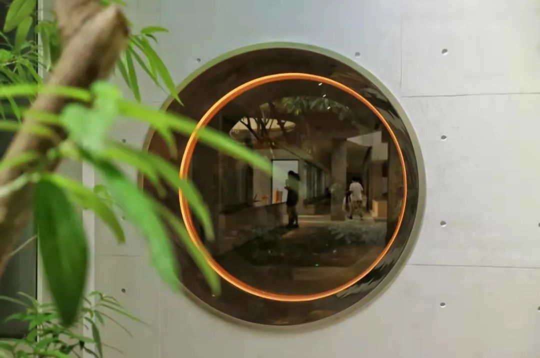 室外与室内形成巧妙呼应的几处灯饰天井,在作为空间景观点缀的同时,又能够及时延伸阳光,加强与地上新鲜空气流通。室内设计采用大面积清水混凝土凸显“野”的项目特质,使空间在“公园”的生态环境下更显质感。