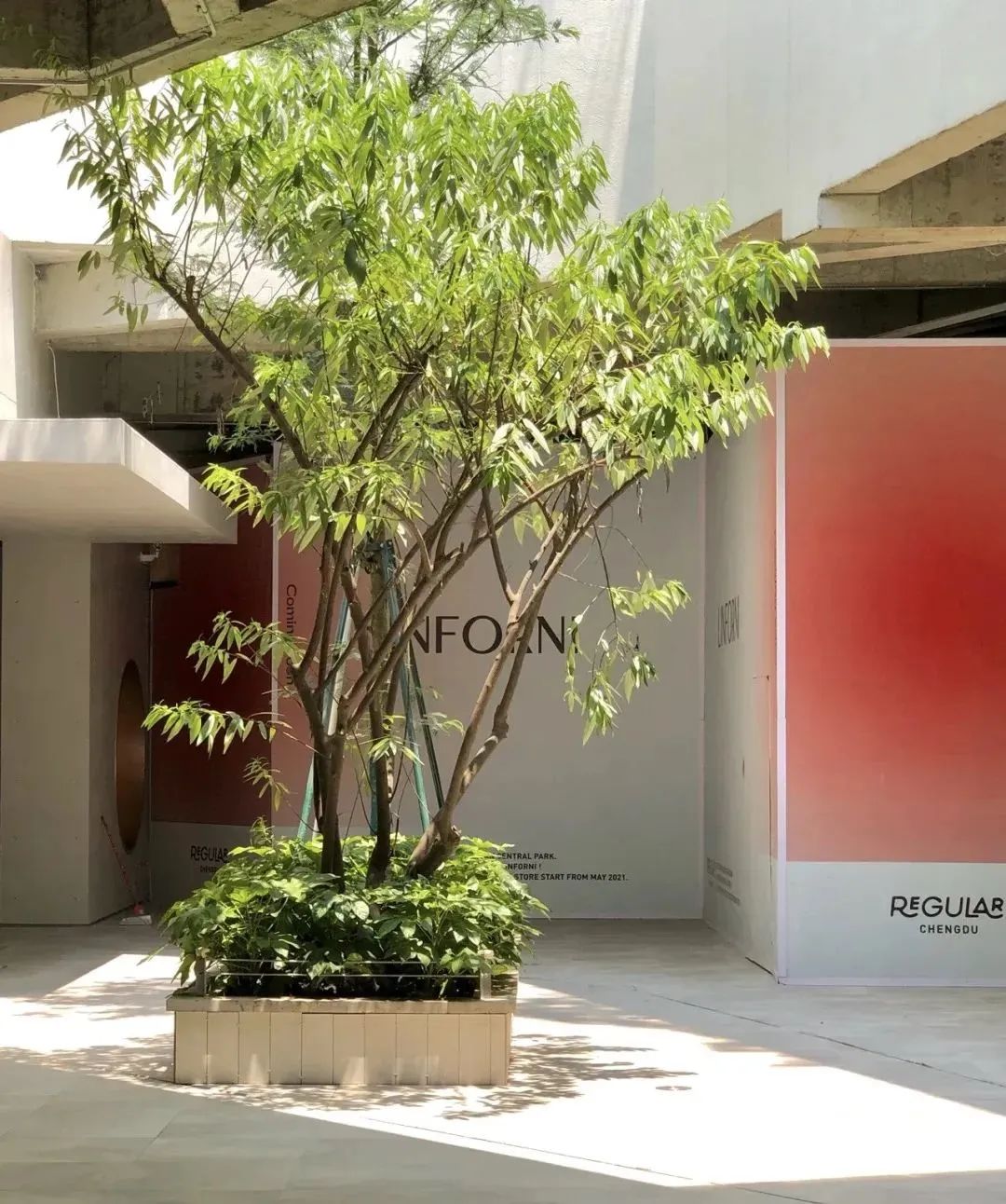 频频从社交媒体中出圈的成都REGULAR源野,以“具有城市影响力的文化生活地标”为定位、以生活方式为核心主题,为小体量的社区商业与公园商业的结合带来新思路。项目采用半开放式整体形态,围绕北、西、东3个花园及1个公共空间进行连接,在商业区域营造置身于“森林”的神秘感。