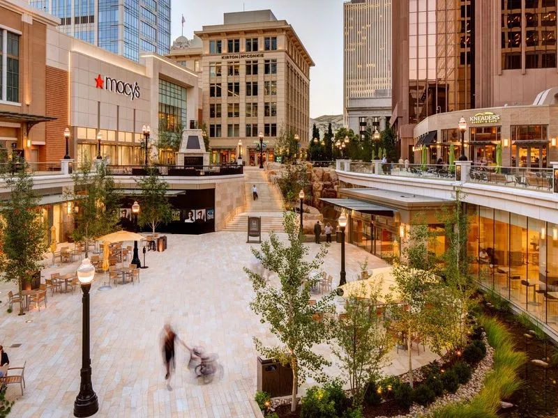 美国犹他州City Creek Center(城市溪流中心)是一个集住宅、办公与零售为一体的公园式商业,将1225英尺长的小河自然带入两个城市购物街区当中,活跃商业空间,成为人们乐于行走的游逛动线,也通过“溪流”营造的休闲氛围将商业项目如公园般融入城市。