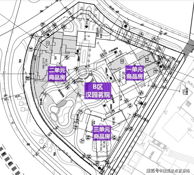 汉园茗院B区总占地面积约1.22万㎡,总建筑面积约10万㎡,计容建筑面积约7.52万㎡,容积率5.31,绿化率30%,共由3栋总高39-45F的超高层住宅组成,其中3栋1/2单元住宅45F,3栋3单元住宅39F。