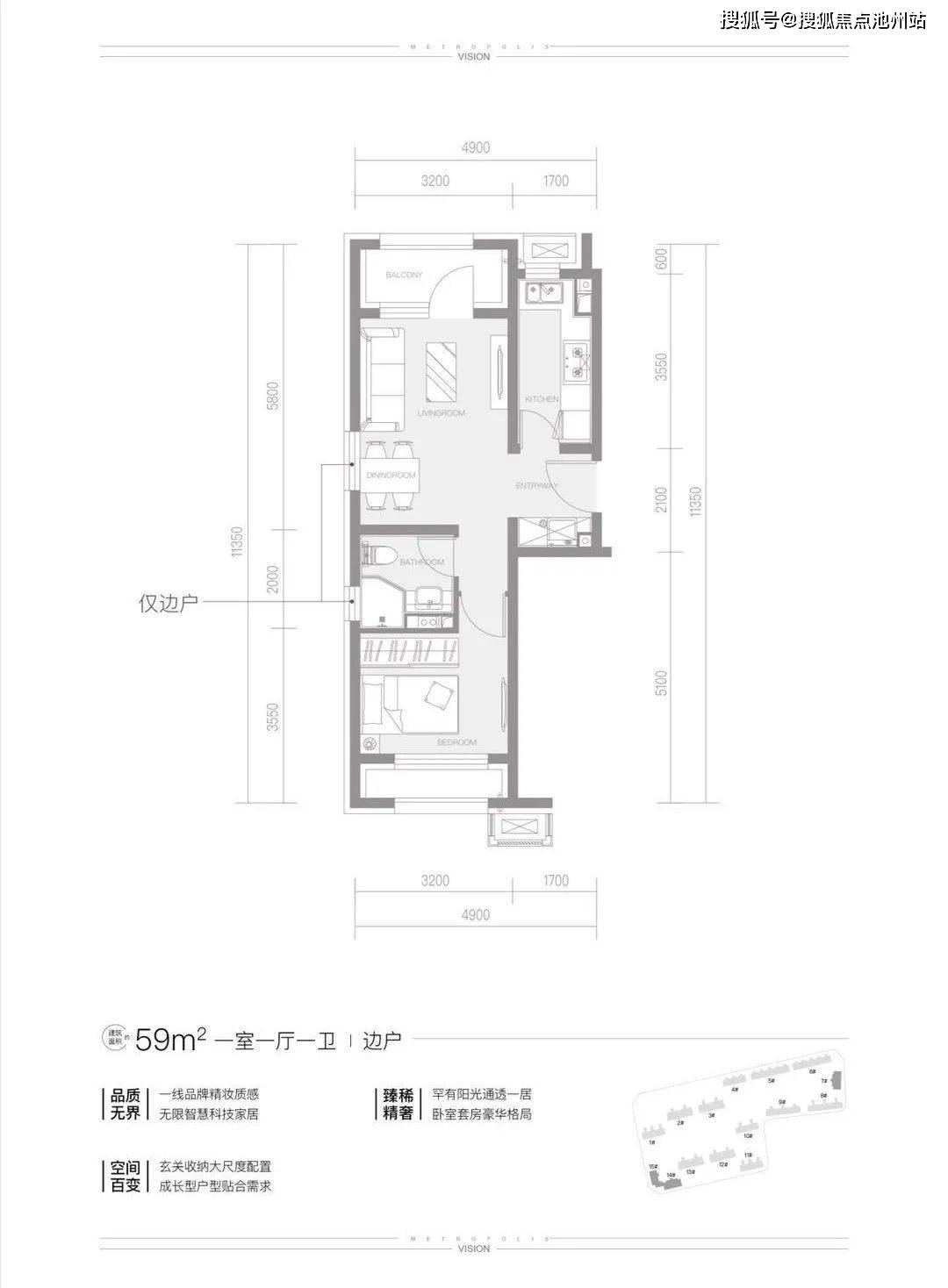 在售户型:一居约53/59㎡、两居约72㎡、三居约96㎡、四居约135㎡、smart墅约150-280㎡