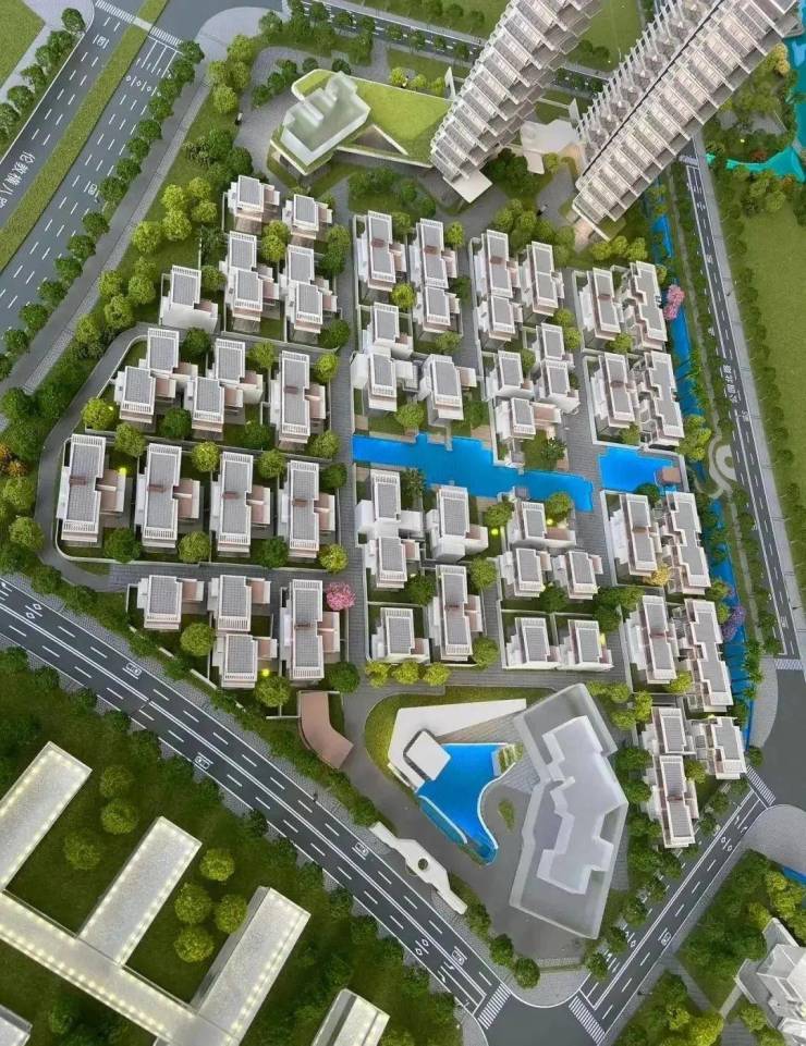项目A区住宅占地面积约5.8万㎡ ,总建筑面积14.7万㎡,其中计容建面8.7万㎡。包含4栋高层、约20栋别墅,整体A档。高层:建筑高度为100m,标准层高3.3m,地下室层高约3.8m,精装交付;别墅:建筑高度约14.5m,层高3.5~3.6m,地下室层高约6.6m,毛坯交付。