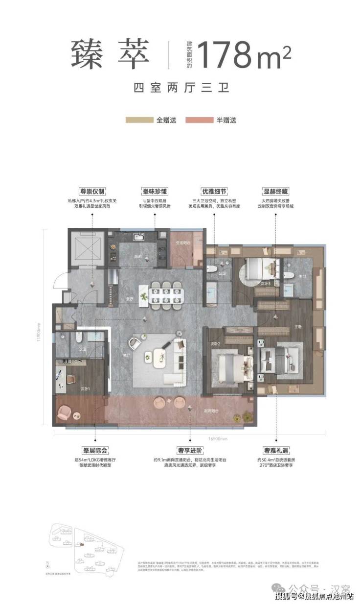 3. 建面约178㎡ 四房两卫 (轻奢平层)