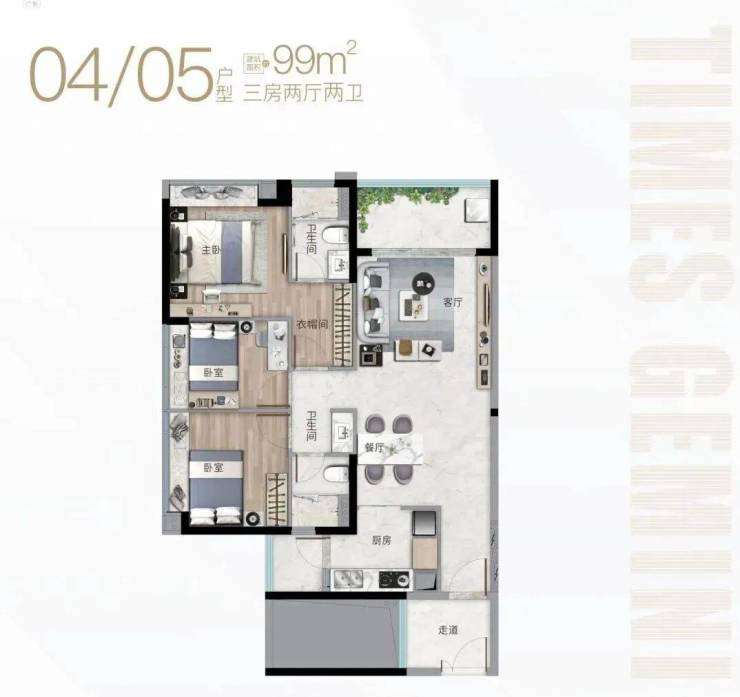 时代珑星共两栋楼,分别是G1栋和G2栋。从外形上看,G1栋算正常,蝶形设计,两梯六户,户型为99-106平三房;G2栋外观略显独特,G2栋推出的面积段为62-79㎡精奢小户住宅。