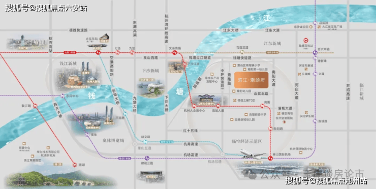 在杭州"拥江发展"战略蓝图中,滨江·潮颂府占据着举足轻重的战略坐标。项目坐落于萧山南阳大道与会展北路交汇处,与地铁1号线南阳站形成300米黄金接驳距离,步行5分钟即可抵达站厅。作为临空经济示范区核心启动区的首发项目,这里承载着杭州"会展+数贸"双核驱动的战略使命,2025年上半年区域固定资产投资同比增长12.7%的强劲数据,印证着这片热土的蓬勃生机。