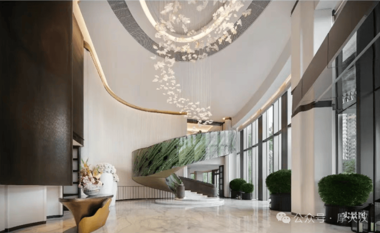 建筑外形圆弧造型优雅流畅,以流线型曲面勾勒出优雅轮廓,以最大化地呈现了270°江景视野;