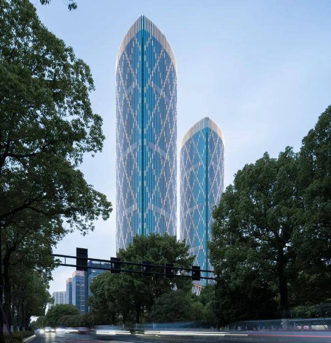 地标属性 钱塘天际线TOP2穹顶建筑,250米双塔为奥体板块视觉焦点,兼具居住与观赏价值1