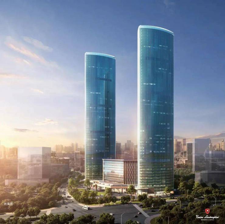 双塔地标格局:总占地约2万平方米,总建筑面积约30万平方米,由T1(写字楼)、T2(托尼洛·兰博基尼行政公寓)双塔楼(60层,约250米高)及T3裙楼(12层,托尼洛·兰博基尼酒店)组成,形成“居住+办公+酒店”一体化高端生活圈1。