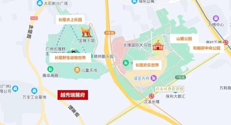 长隆三个主题乐园都在附近,还有飘峰山等山体资源。
