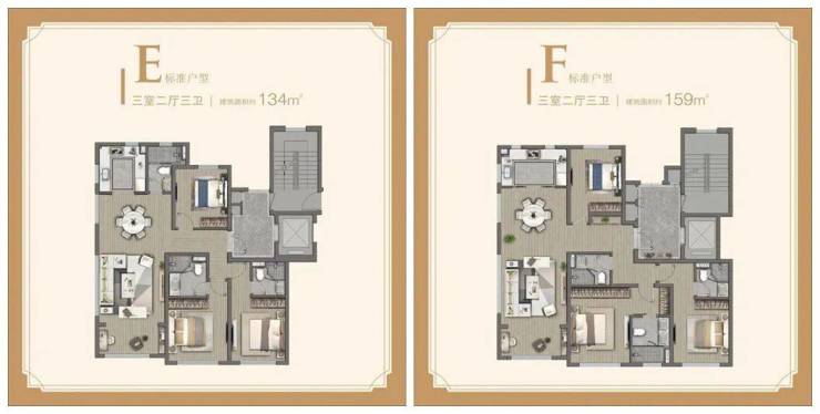 建面约134-160㎡大三房,通过侧面的景观窗,一览百万方中央公园的美景,三个卫生间的配置也让隐私感更强。
