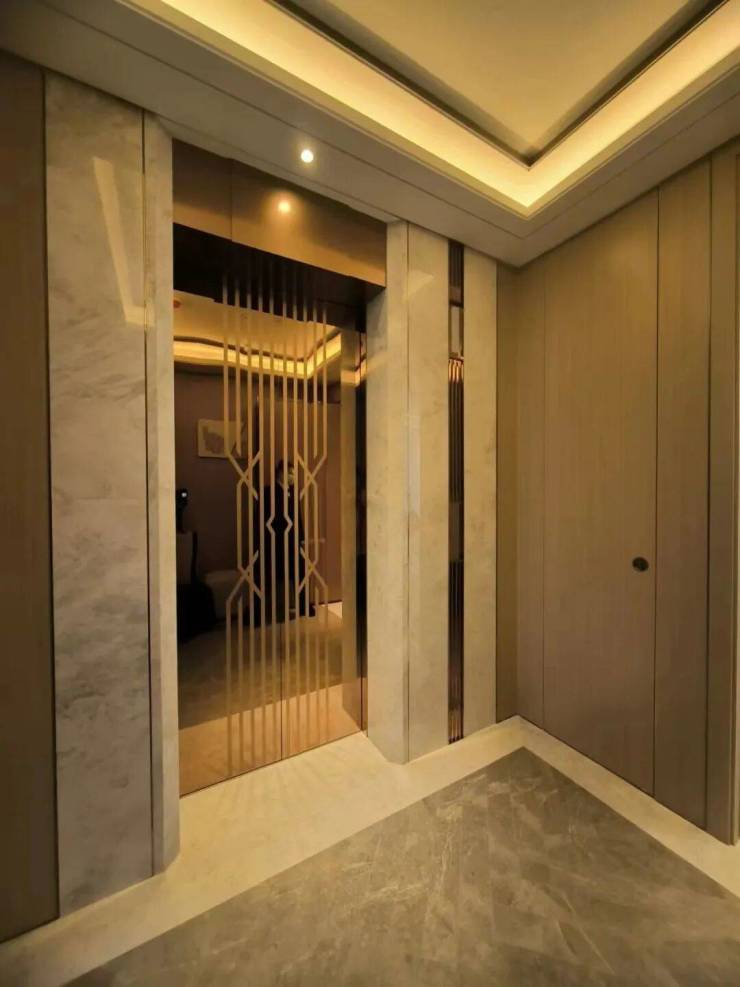即使看似简单的入户门头,复杂地面拼花+石材拼接手法+紫铜工艺点缀,拉满了归家仪式感。