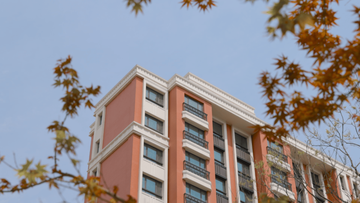 宝华紫薇花园公园道建筑底部采用全进口沉香米黄大理石,三层以上爱和陶熔岩红砖与石材的搭配,演绎出别样的海派韵味。