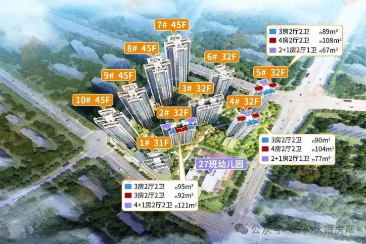 总层高:7栋47层住宅楼、7栋44层住宅楼、5栋42层住宅楼、6栋33层