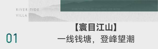 In the era of soaring ambitions, the only natural and precious site on the south bank of the Qiantang River in the mountainous area, the masterpiece of Greentown, will forever attend, and the legend will be presented in the form of works in Greentown · Spring River Tide. The sound of the river bank is silent, and the timeless mansion is reciting the world's tides and annotating the classic rarity.