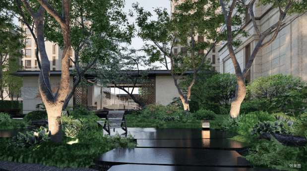 还有轻氧花园、林下健身场,业主下楼就能游赏在绿意之间……