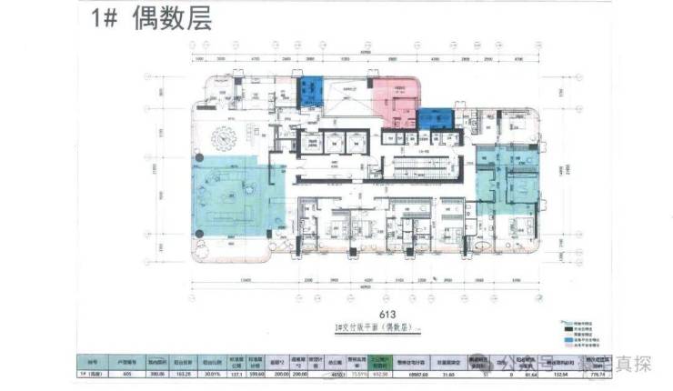 户型面积方面,T1栋大多数房源总面积在750平方米左右,销售申报总价在1亿元至3亿元不等,备案均价每平方米在25万元至37万元。备案没有任何参考价值,我们还是看回实际成交价。