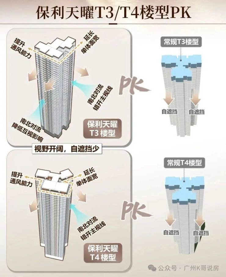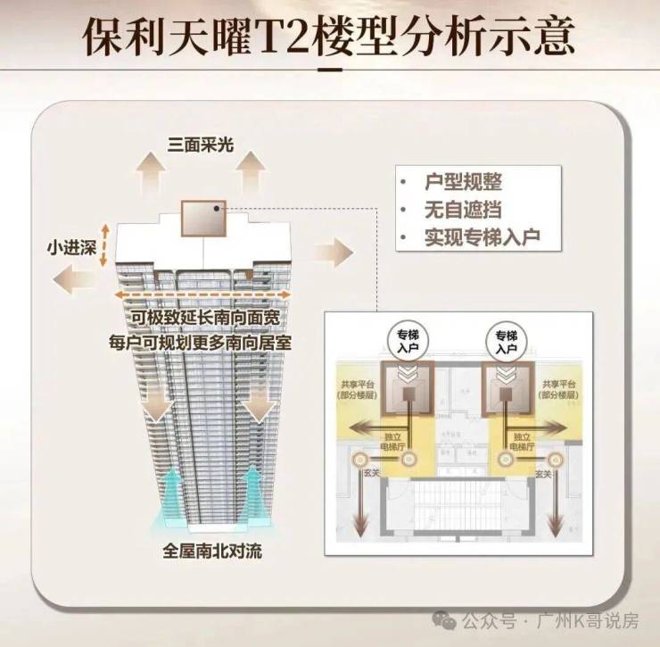设计好处是既保证了通风、采光,还保障了侧向江景和珠城景观的最大化。