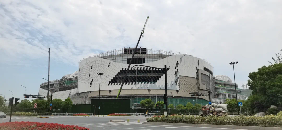 目前奥体印象城的进度还是非常可观的,从现场情况来看,正在进行立面施工。