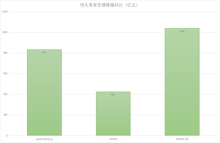 这一数字相比2020年末恒大的有息负债下降了1465亿元,相比2021年一季度下降了1040亿元。换言之,在2021年,恒大仅用半年时间,便实现降负债1465亿元,而最近3个月则降实现负债1040亿元。