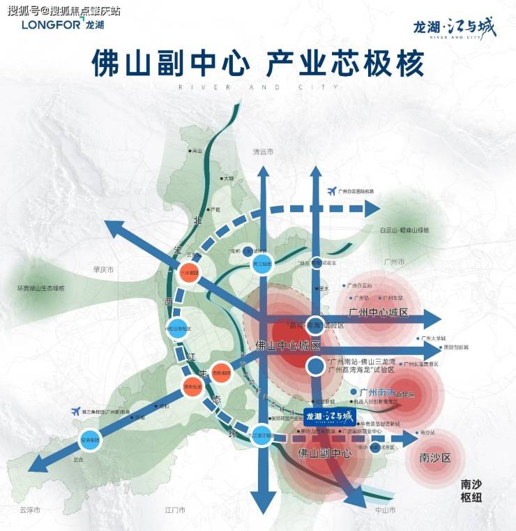 ①广佛4万亿超级城市群融合加速!在十四五规划助力下,“南部新兴发展轴”崛起!广佛交界依托地缘+地铁+产业先行成熟,自北向南形成“交界融合发展轴”,双轴交汇伦教,造就广佛新一代价值极核!项目执掌双轴红利,标定广佛置业新焦点!