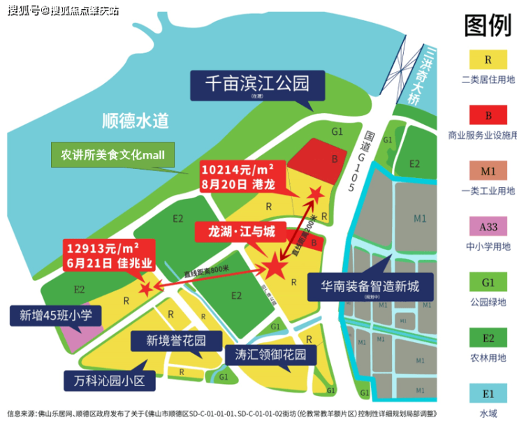 ②土拍火热,地铁红利兑现在即!与本项目直线距离约800米的顺德水道南滨江公园地块,经72轮竞拍后,以12913元/㎡的楼面价成交,板块售价预计站上3万+!