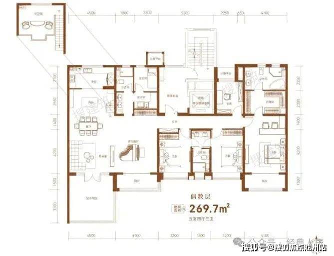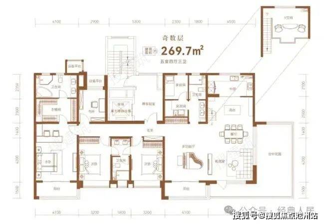 瑞凝府建面约269.7㎡ 五室四厅三卫 奇数层
