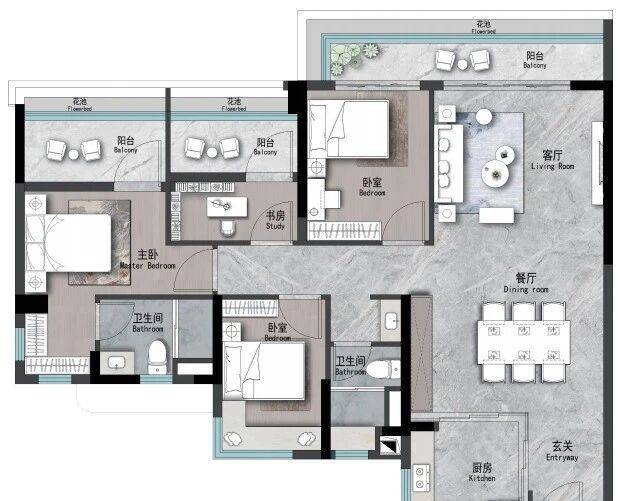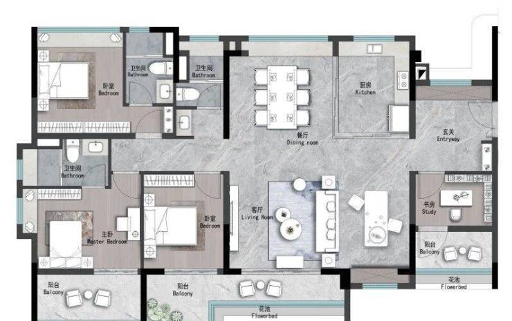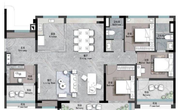 👇建面约125m² | 4空间二厅二卫