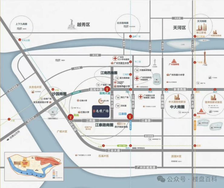 医疗——周边有海珠区南方医科大学珠江医院,广州医科大学附属第二医院、海珠区妇幼、红十会医院、广州市中医等重点医院;