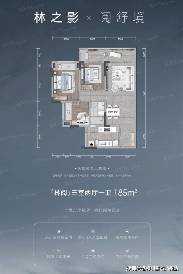 招商·渝天府 平层户型·建面/85㎡