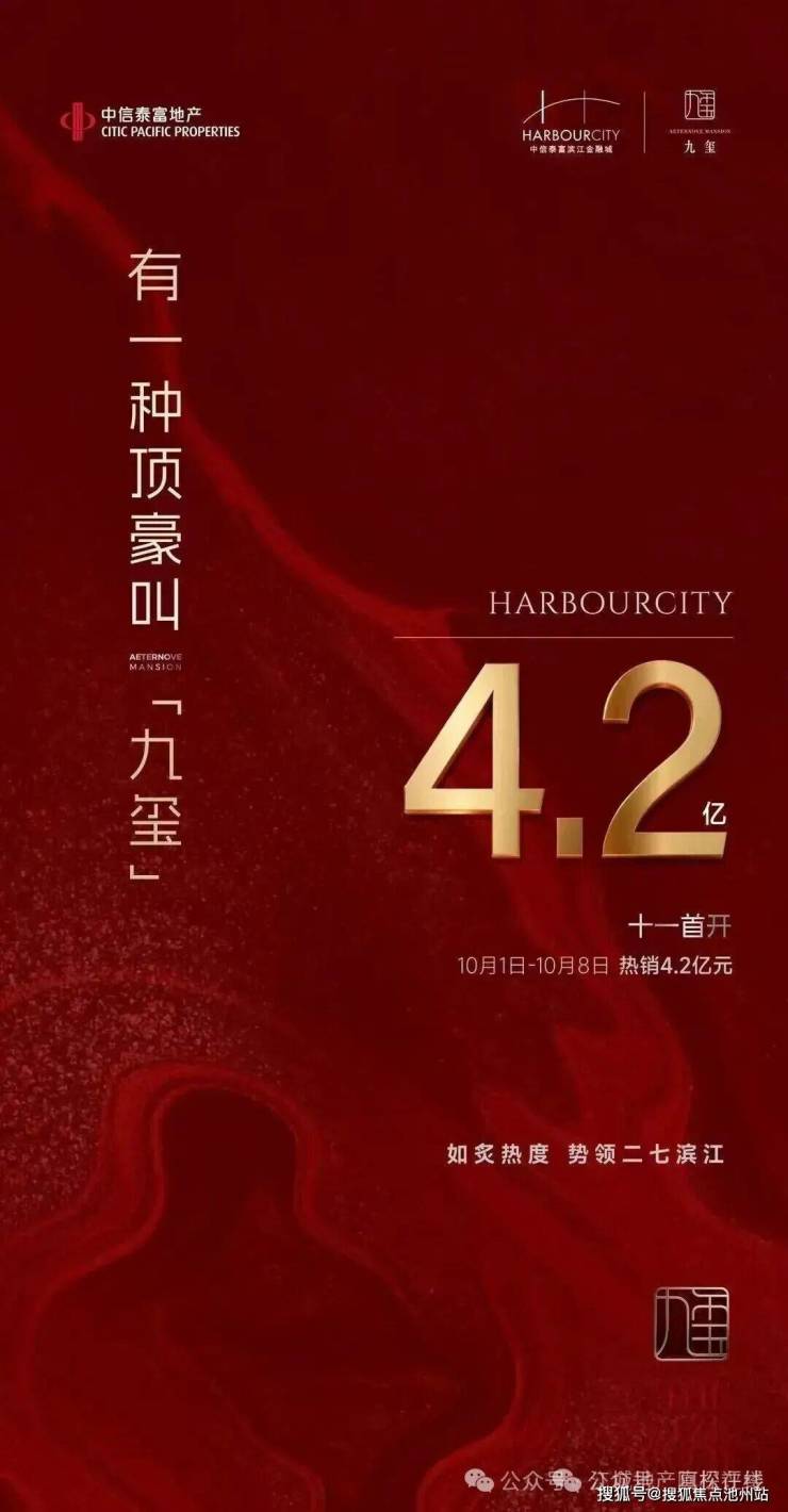 2025年十一期间,中信泰富滨江金融城九玺正式开盘!根据官宣海报,项目首开热销约4.2亿!取得开门红!