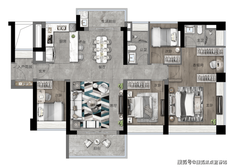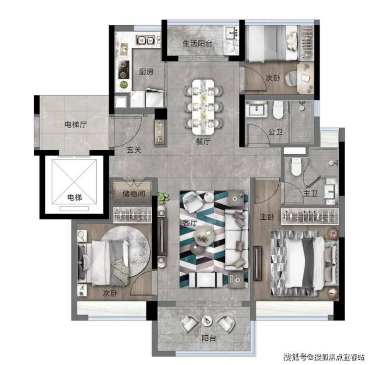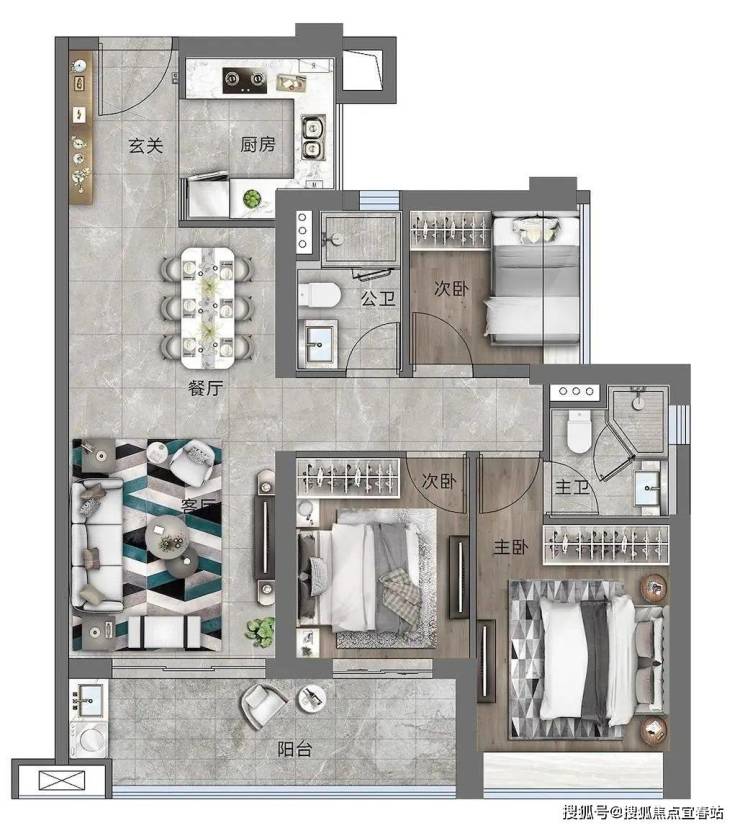 ②超6米宽阳台,进深达1.8米,超10㎡阔绰阳台,贴心预留嵌入式家政柜的空间。