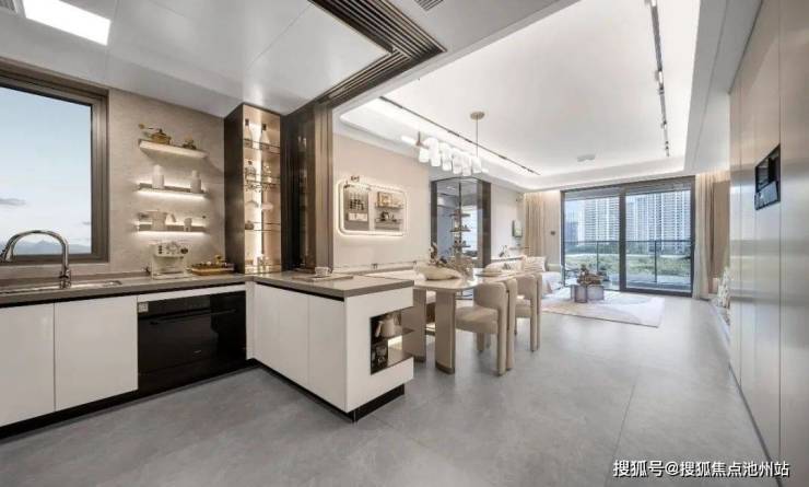 同价楼盘客厅基本都是瓷砖,但它通铺岩板,而且是90×180cm的大岩板!稍不留神,就会给你一个彩蛋。