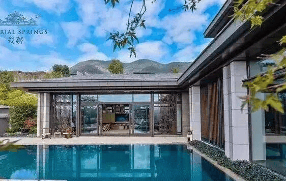 白金五星级温泉酒店:是中国国内首个全套房式酒店,拥有独立套房和别墅(90 间套房,37 栋院落式别墅)。提供全天候的私人管家服务,为了保证优雅宁静的入住环境,酒店区域内不允许车辆行驶,当贵宾到达酒店大堂时,私人管家直接陪同贵宾换乘电瓶车前往其预定的客房