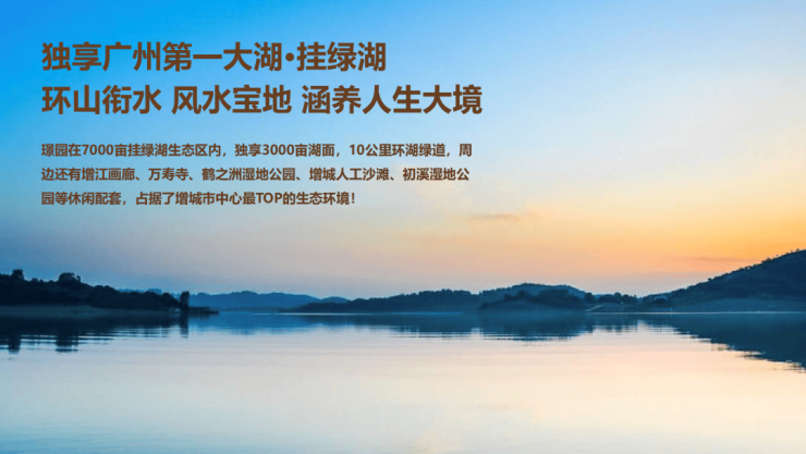 项目位于增城负离子含量最高的核心生态资源区挂绿湖,亲近大自然天然大氧吧,私家20公里环湖跑道,一线湖景尽在眼前
