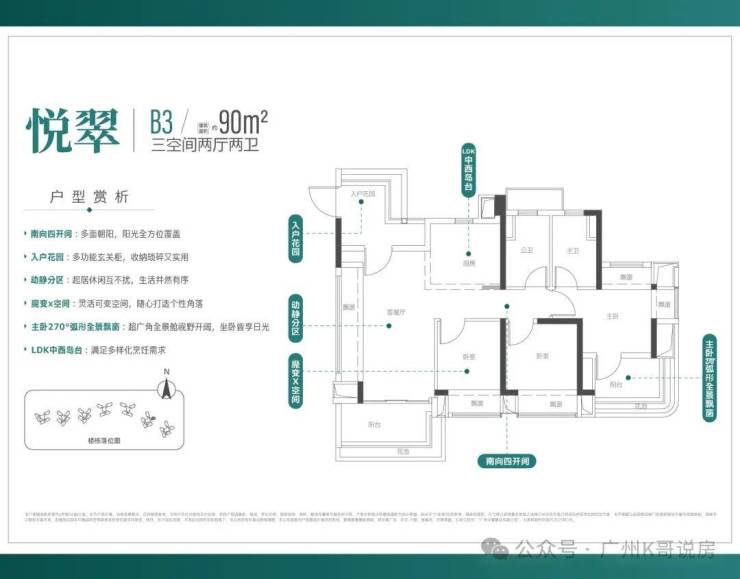 建面约90㎡/三空间两厅两卫