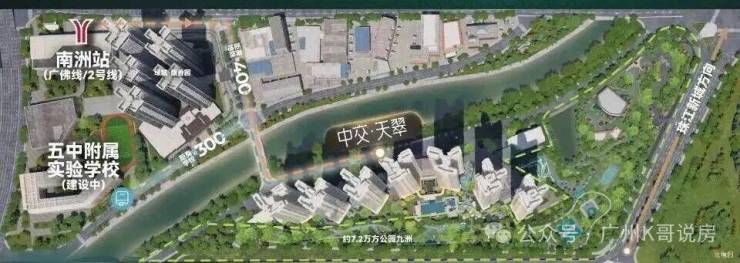 出行上,2号线与广佛线交汇站——南洲路站,就在项目西北角约400米处,而馥香园则是真正地铁上盖。