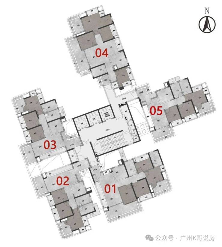 1-3栋为3梯5户,4-5栋为3梯4户,均为46-48层的超高层住宅,并且还配备一所9班幼儿园