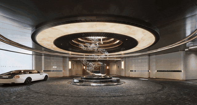 其打造的“中央车站”式地下车库,以马蹄石铺地、大理石立面与透光穹顶,构建出充满仪式感的落客空间。