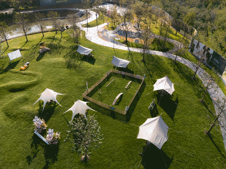 宠物游乐设施、草坪跑道、宠物便便箱,为毛孩子们建造一个专属乐园,总面积约为340㎡。