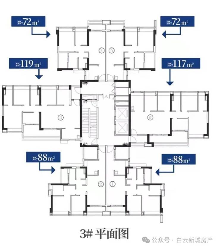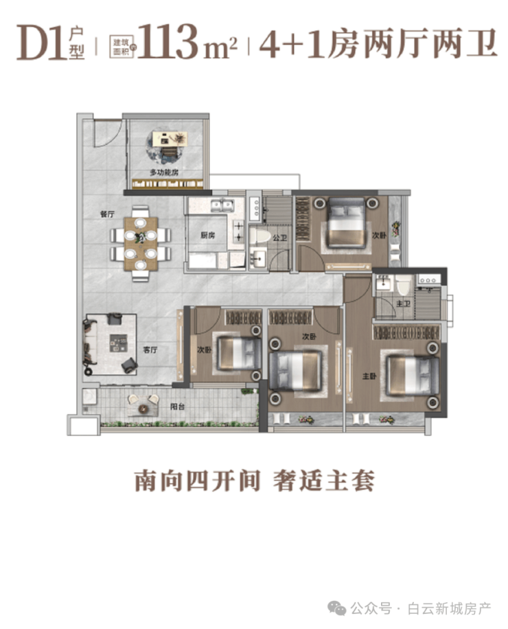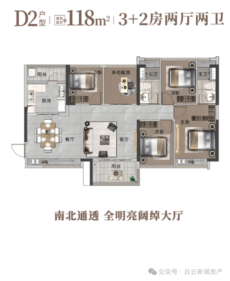 特点:园景四房,动静分区,方正实用,全明空间,通风采光佳。