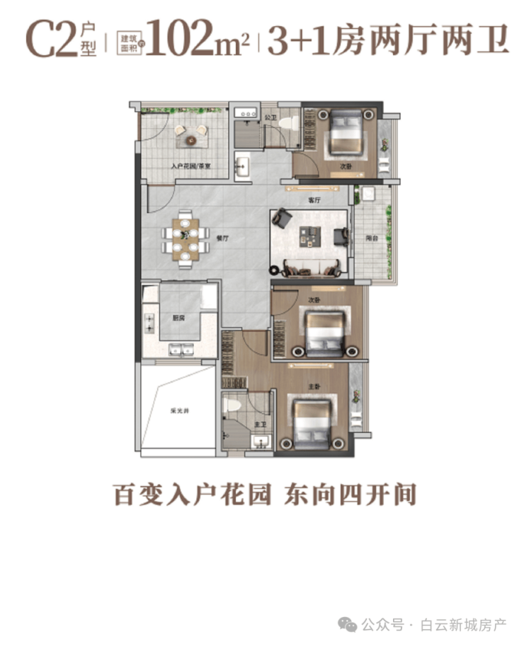 特点:百变入户花园 东向四开间,全明空间,方正实用。