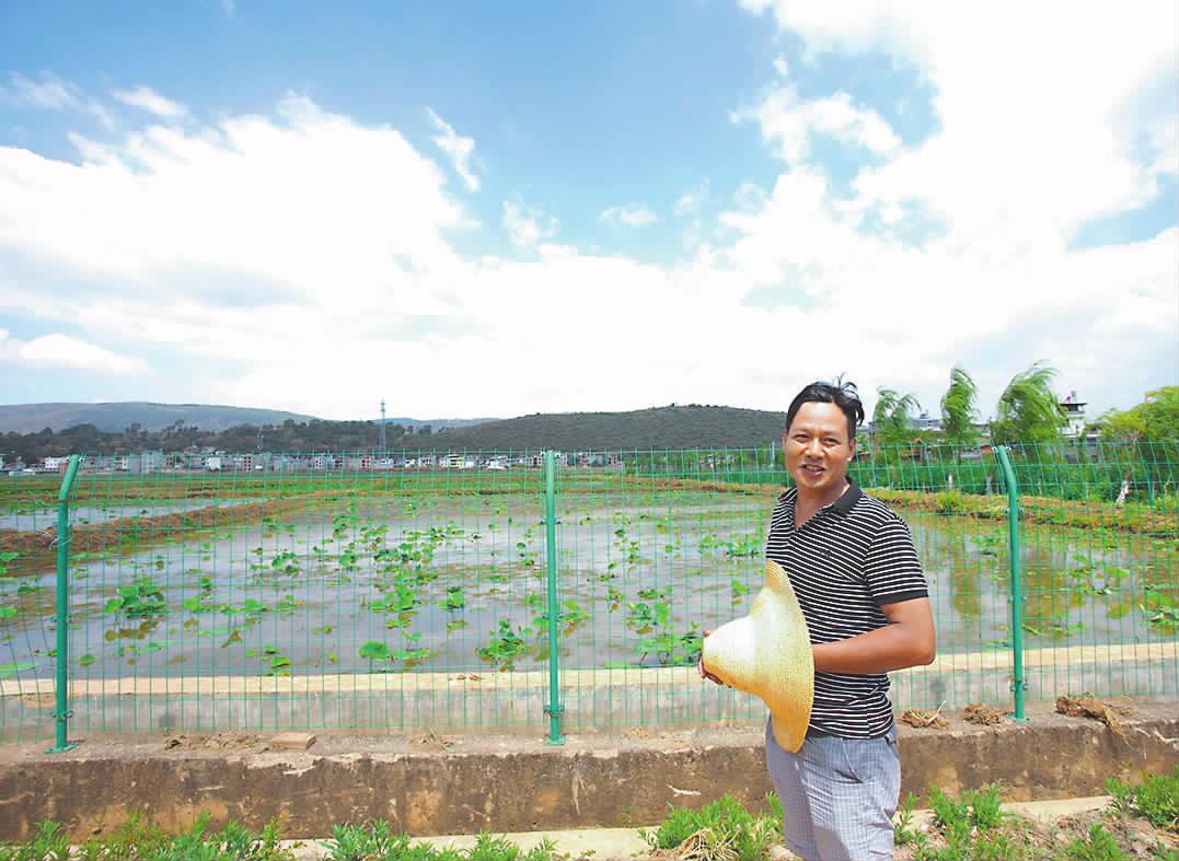 下坝社区的杨红明、张亚忠之前在墨江栽辣椒,今年3月返乡创业,签了一年返租合同,包下210亩土地种植莲藕。