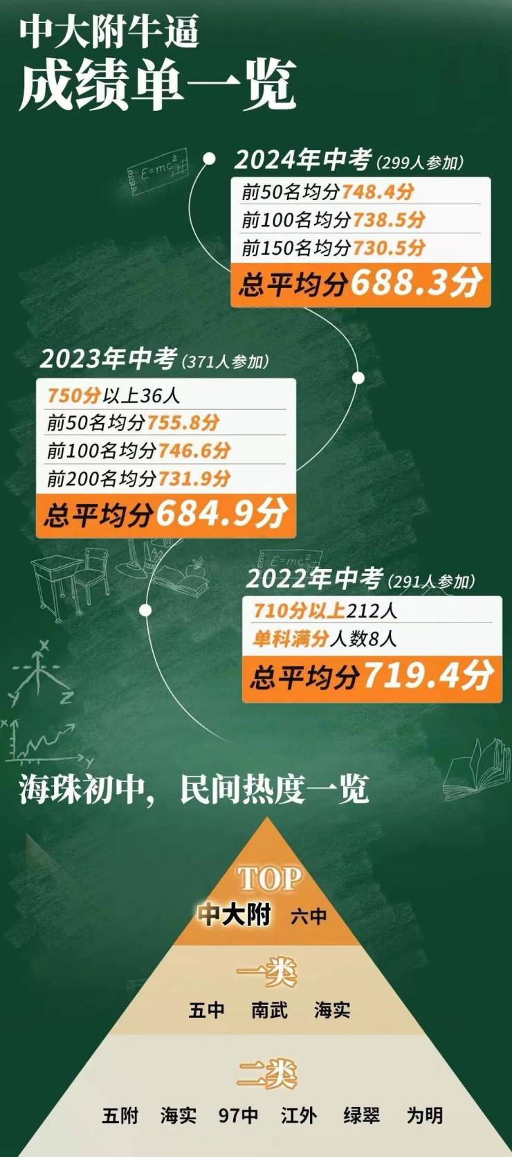 这其中,仅中大附一所初中,就有150位学霸,均分超过730分,占比达到7.8%!