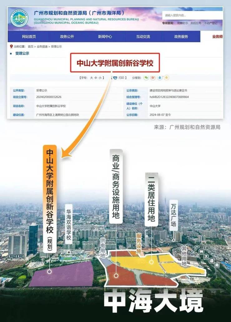 旁边现有华海九年一贯制学校,即华附海珠国际双语学校,项目西北面直线2公里就是中山大学。