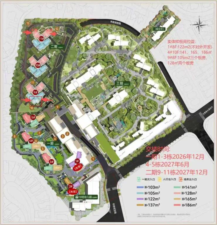 一期1-3栋2026年12月,4-5栋2027年6月,二期9-11栋2027年12月
