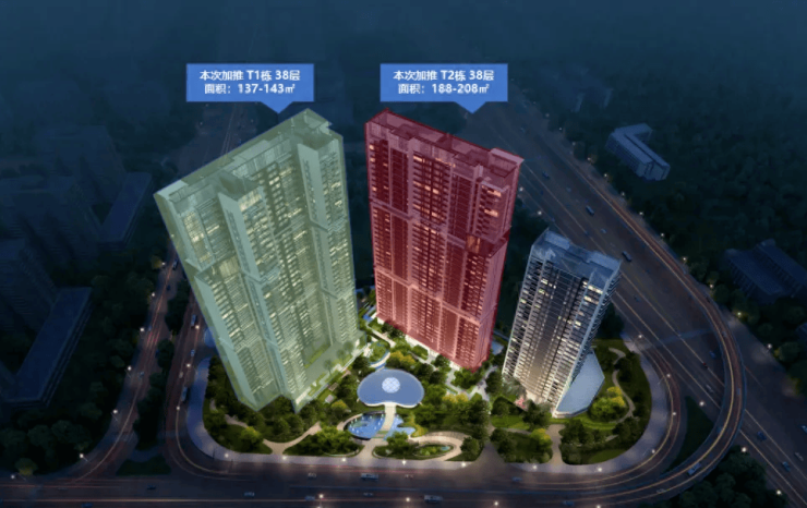 项目总共3栋楼,分为T1、T2和T3栋,T2栋和T3栋是由2栋楼连起来的,也有说是5栋楼。