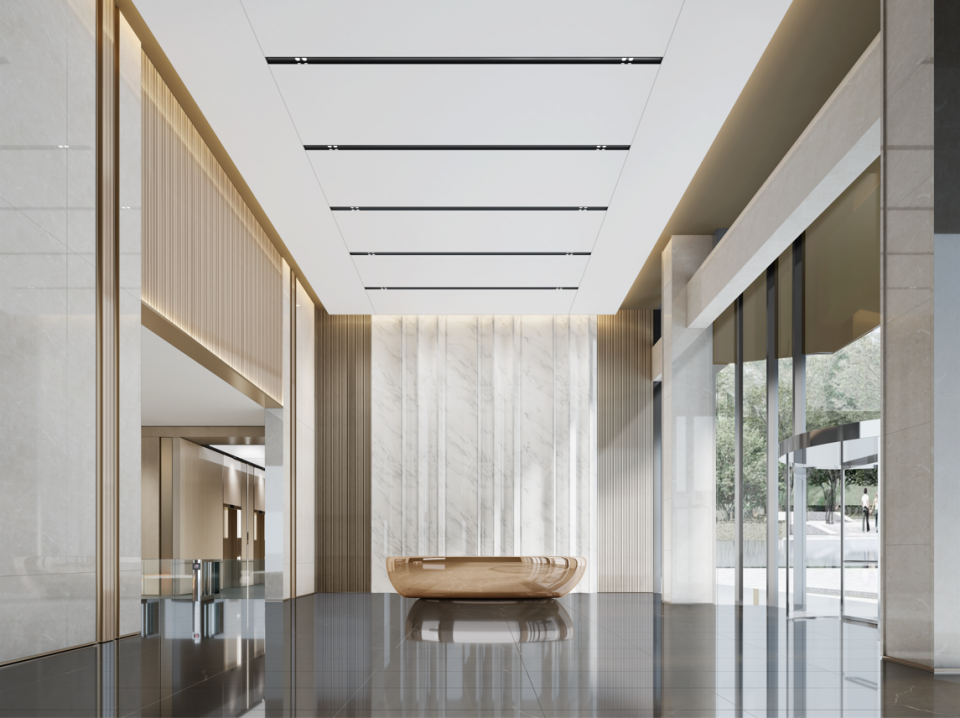 环幕美学:项目匠心采用极简玻璃幕墙,不仅使建筑更具时代感和品质感,更带来室内外交融的通透意境,将窗外繁华和汉城湖景致尽收眼底。