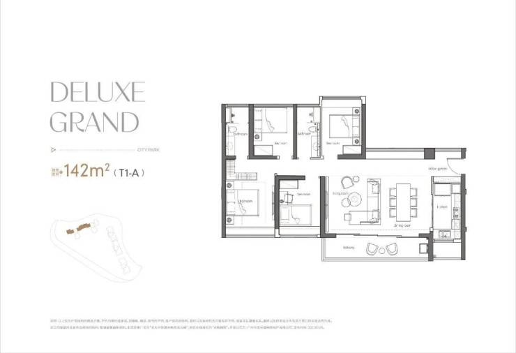 约140㎡户型,方正布局,全明格局,大横厅搭配南北通透,带来宽尺度、宽格局、宽视野的极致体验,一览无遗,山、城、园三境尽收眼底,占据未来人居,最大化诠释了功能与奢适完美相融。