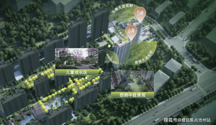 5#南北通透,毫无遮挡,6#楼南向无遮,北面拥有超65m奢阔楼间距,阳光与盛景全天候浸润室内,告别老房 “暗厅暗卧” 的困扰;与此同时,5#&6#双座踞守东西景观中轴核“芯”,近距认知花园、以《江岸望山》为蓝本的东方山水庭院,推窗见景,社区精粹风光成为日常生活的背景。